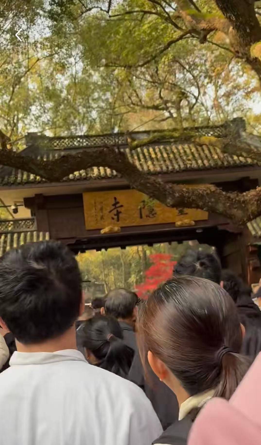 灵隐寺免票第一天游客在门口排队。图/社交平台截图